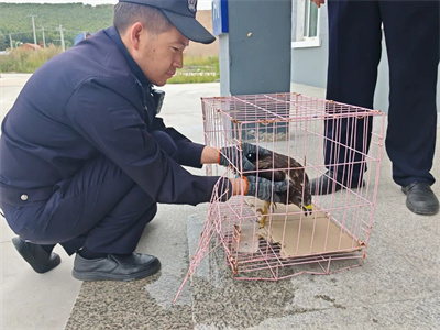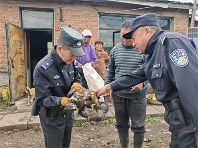 9月15日下午,內(nèi)蒙古大興安嶺森林公安局阿爾山分局圣泉派出所接到轄區(qū)生態(tài)養(yǎng)殖點(diǎn)群眾報(bào)警,稱在自家房屋旁的草叢旁發(fā)現(xiàn)一只鳥,這只鳥翅膀無力垂落,始終無法飛起。