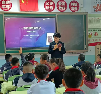 (通訊員:王佳 張秉毅)“警察老師,護(hù)照里真的藏著長城嗎?”“出國的時(shí)候,它是不是能保護(hù)我們呀?”課堂一開始,內(nèi)蒙古呼和浩特市新城區(qū)勝利路小學(xué)的孩子們就圍著講臺(tái),拋出一連串充滿好奇的問題。