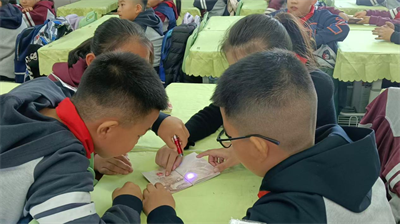 “大家仔細(xì)看,見證奇跡的時(shí)刻到了!”民警張秉毅拿起紫外線手電,對(duì)準(zhǔn)手中的護(hù)照內(nèi)頁。隨著光束移動(dòng),長城的蜿蜒輪廓、上海浦東的摩天大樓等標(biāo)志性景觀逐一顯現(xiàn),課堂上瞬間響起此起彼伏的“哇”聲?!拔胰ミ^上海!這是東方明珠旁邊的樓!”“我在課本里見過長城,原來護(hù)照里也有!”孩子們伸長脖子,爭先恐后地指認(rèn)著熟悉的地標(biāo),小臉上滿是興奮。