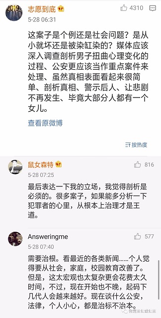 所以這些事除了個人,也是國家、社會的責(zé)任,怎么樣去緩解社會矛盾是一個應(yīng)該重視的課題。