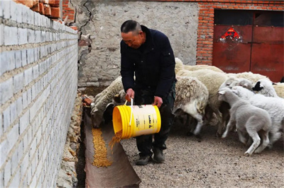 青格勒?qǐng)D嘎查牧民呂茂森正在調(diào)配草料。