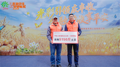 金秋的陽光灑向田野,豐收的喜悅隨風(fēng)蕩漾。在第八個中國農(nóng)民豐收節(jié)到來之際,平安人壽內(nèi)蒙古分公司在內(nèi)蒙古自治區(qū)黨委統(tǒng)戰(zhàn)部、內(nèi)蒙古自治區(qū)農(nóng)牧廳的指導(dǎo)下,聯(lián)合內(nèi)蒙古自治區(qū)光彩事業(yè)促進(jìn)會、內(nèi)蒙古自治區(qū)品牌建設(shè)促進(jìn)會,在卓資縣民豐種業(yè)土豆種植基地隆重舉行“光彩引領(lǐng)慶豐收 金融助收享平安”2025年內(nèi)蒙古自治區(qū)農(nóng)產(chǎn)品推介暨金融教育宣傳周公益助收行動。