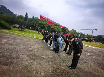 參觀結(jié)束后,全體人員在紀(jì)念館前的紀(jì)念廣場舉行了簡樸而莊重的緬懷儀式。隨后,在莊嚴(yán)肅穆的氛圍中,全體優(yōu)秀共產(chǎn)黨員整齊列隊(duì),面向革命烈士群雕深深三鞠躬,表達(dá)對(duì)在湘江戰(zhàn)役中英勇犧牲的紅軍將士的深切緬懷和無限追思。