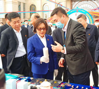 啟動(dòng)儀式后,布小林、王莉霞、張恩惠等領(lǐng)導(dǎo)參觀了紅城·青城文化旅游產(chǎn)品大集,并對(duì)參展的內(nèi)蒙古未名洋文化產(chǎn)業(yè)公司在文創(chuàng)產(chǎn)品的創(chuàng)新、蒙元文化的傳播等方面取得的成績(jī)給予了高度評(píng)價(jià)和肯定。