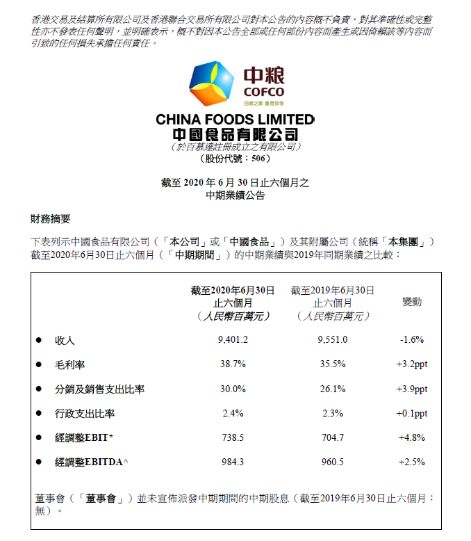 日前,中糧可口可樂大股東中國食品有限公司(股票代碼:00506.HK,以下簡稱中國食品)發(fā)布了2020年中期業(yè)績報告。期內(nèi),公司銷售收入達94.01億元人民幣,得益于有效的成本控制和財務(wù)費用的下降,中國食品凈利潤增厚至5.6億人民幣,同比增幅5%。
