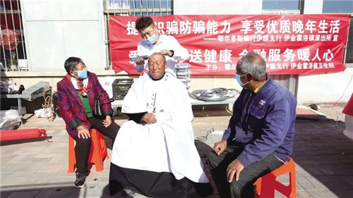 鄂爾多斯銀行公尼召普惠金融服務(wù)站開(kāi)展“愛(ài)心義診義剪·關(guān)愛(ài)老年人”活動(dòng)