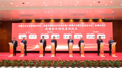 2023年10月19日上午,中國工商銀行內(nèi)蒙古自治區(qū)分行、各盟市分行與內(nèi)蒙古自治區(qū)供銷合作社、各盟市供銷合作社舉行全面戰(zhàn)略合作簽約。