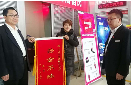 (本網(wǎng)訊:楊彩霞)春節(jié)期間,街上的行人忙忙碌碌,而工行內(nèi)蒙古烏蘭察布豐鎮(zhèn)城隍廟支行和往常一樣接待一個又一個辦理業(yè)務(wù)的客戶,這天下午該行大堂經(jīng)理孫志強在例行巡視營業(yè)廳引導(dǎo)客戶時,發(fā)現(xiàn)在客戶區(qū)的地面上有一個淺色皮夾,憑著職業(yè)敏感,孫志強認為可能是客戶在辦理完業(yè)務(wù)后掉落的,于是他拾起皮夾并向行長報告情況。經(jīng)清點,皮夾內(nèi)裝有8000多元現(xiàn)金,十余張銀行卡及身份證等證件。于是,馬上調(diào)閱了監(jiān)控,通過身份證信息、微信等多種方式尋找客戶,并到客戶家里進行了確認,將客戶遺失現(xiàn)金、銀行卡及證件完璧歸趙。當失主接過失而復(fù)得的錢包時,感激之情難以言表??蛻魹樵俅伪磉_感謝,向城隍廟支行贈送了錦旗。并對孫志強拾金不昧的精神,當?shù)仉娨暸_進行了采訪。