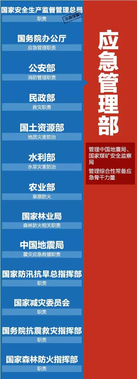 【三】設(shè)立應(yīng)急管理部,統(tǒng)管消防、地震、救災(zāi)、森林防火、礦難救援等所有突發(fā)災(zāi)難事故處理。